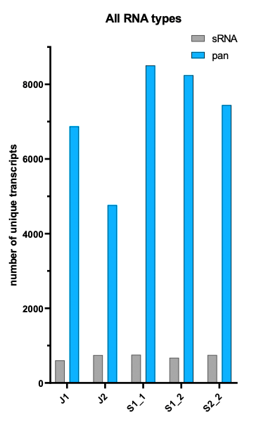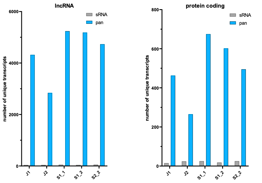 Number of different transcript-species identified with small RNA-Seq and TQ panRNA-Seq after filtering