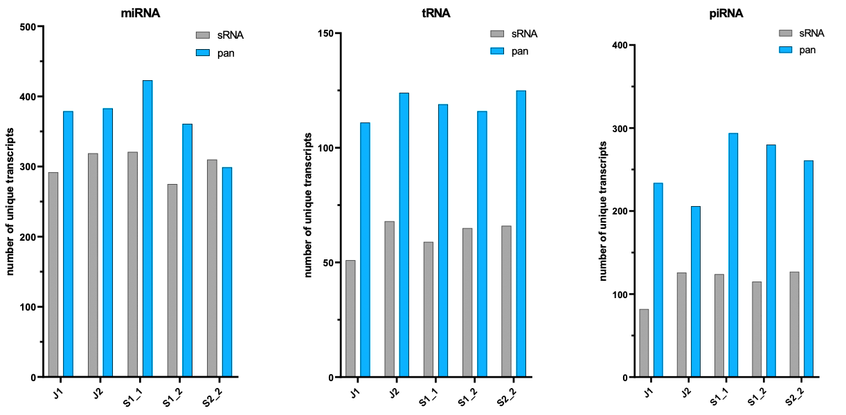 Compared to conventional small RNA-Seq, TQ panRNA-Seq uncovers up to ten times more different transcript species, providing a far more complete picture of RNA expression.